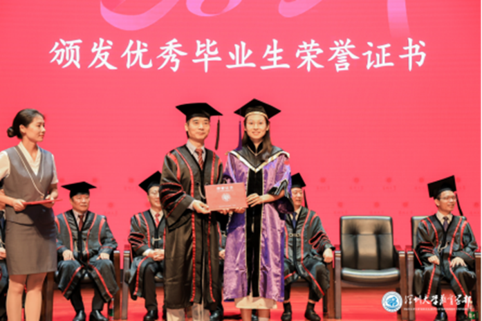首先,李臣为优秀毕业生颁发荣誉证书。
