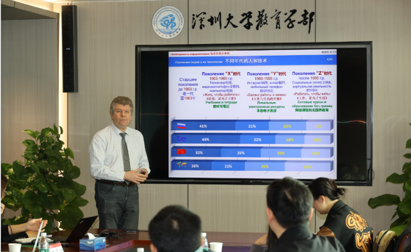 最后,瓦季姆·格林什昆教授作题为《数字技术对教学系统的影响--以俄罗斯的数字资源和方法为例》的讲座。他指出,随着数字化技术在教育领域应用的逐渐成熟,高等教育应当重新审视数字化技术的地位和作用。以教材为例,他指出了电子教材虽然能提供纸质教材无法提供的视频影音等直观化教学资源,提高教学效率,但是在物理、电子技术等实验教学领域,数字化技术无法给予学习者动手操作上的实感,知识学习与实践操作的脱节会降低教学效率。因此,教学技术的使用应当结合教学内容的实际情况进行合理设计。他还强调,数字技术只是教学的辅助工具,它无法替代人的教学,也不是教学的核心。当下应当思考和重视的是,在数字化背景下,该制定怎么样的教学目标,即为什么教、教什么、怎么教、用什么教的问题。最后,他重申了教学目标的重要性,指出了电子设备、信息化、数字化技术等教育工具都应为教育教学服务,为培养高质量人才这一根本目的服务。