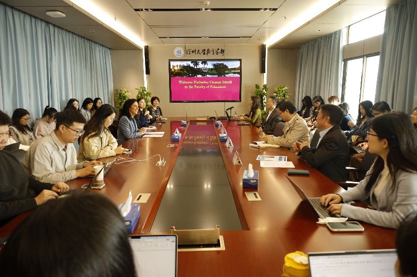 发表讲座表达了感谢。随后,Katharine直击本次讲座的主题,即高等教育如何培养面向未来世界并具备全球胜任力的学生。她指出,在AI技术渗透教育领域的今天,高等教育所面临的最紧迫的问题实际上还是人的问题,而不是技术的问题。