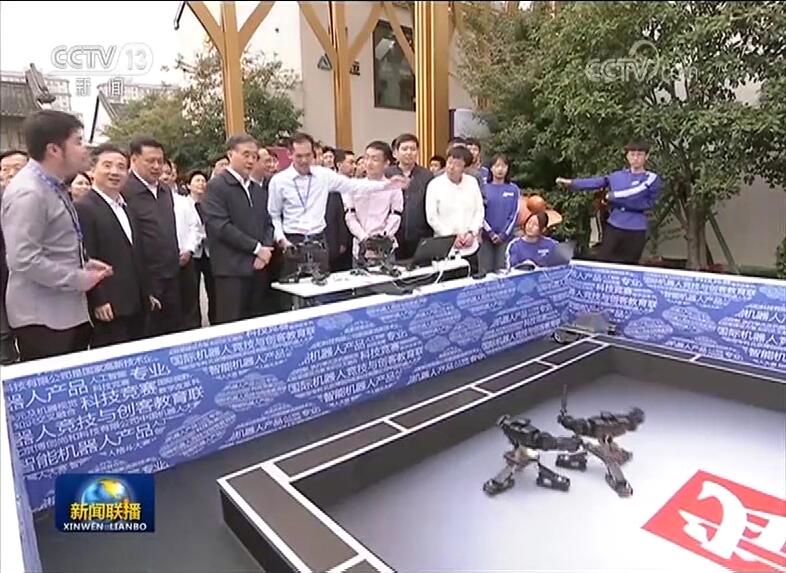 在大赛取得一等奖两项、三等奖两项的好成绩。陈天才、朱靖靖、王燕婷、郑鸿志等4位同学向中共中央政治局常委、全国政协主席汪洋、浙江省委常委、杭州市委书记周江勇等领导嘉宾作机器人格斗表演。