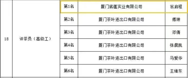沧海横流,方显英雄本色;青山矗立,不堕凌云之志,翁启程先后获得第二届福建省评茶员职业技能竞赛厦门队第一名、厦门市第二十八届职工技能竞赛市级A类(评茶员(高级工)技术竞赛)第一名,2022年度厦门行业(数字)工匠。