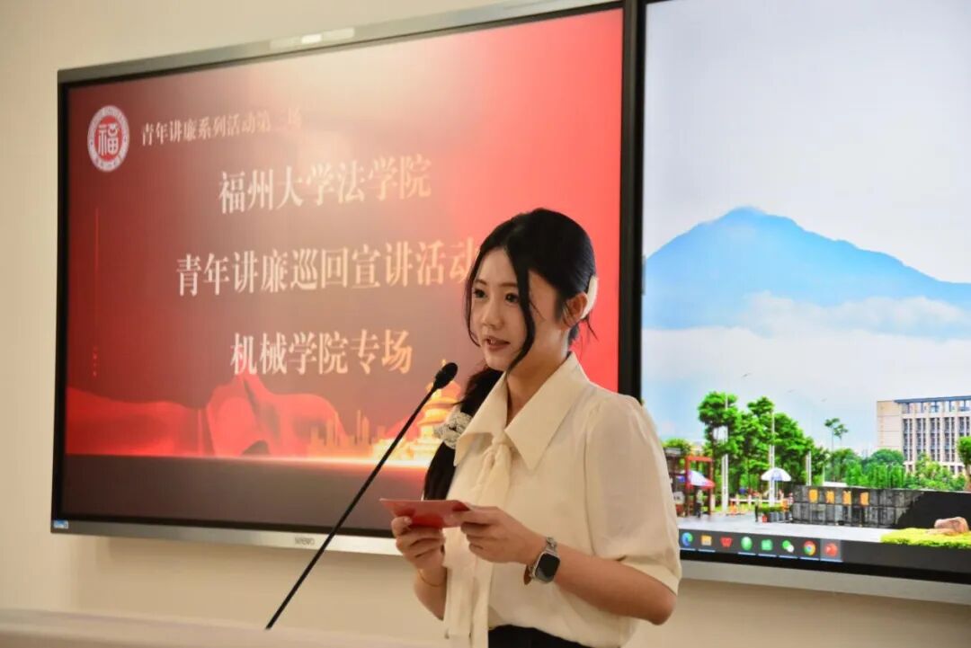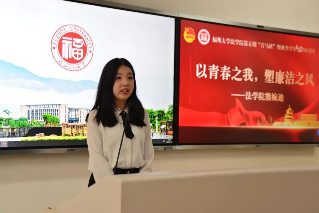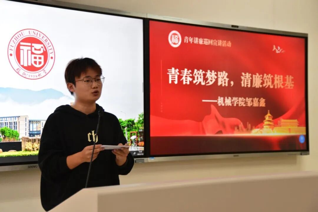 的三名同学进行演讲,从不同视角阐释廉洁内涵,为现场同学带来一场深入灵魂的廉洁教育。
