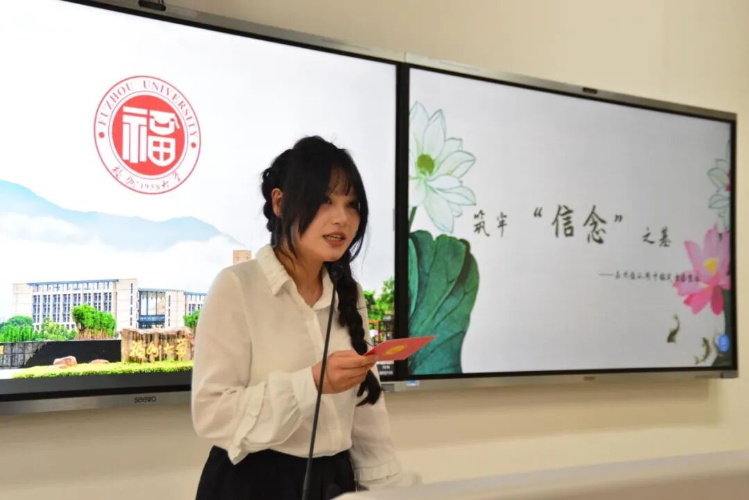 优秀党员代表熊婉迪同学的演讲以玉之温润、莲之高洁的古典意象开篇,串联起绵延千年的廉政文化脉络。她巧妙运用“扣好第一粒扣子”的比喻,将理想信念比作“指南针”,真抓实干比作“推进器”,纪律作风比作“安全阀”,为青春构筑“不想腐”的精神防火墙。