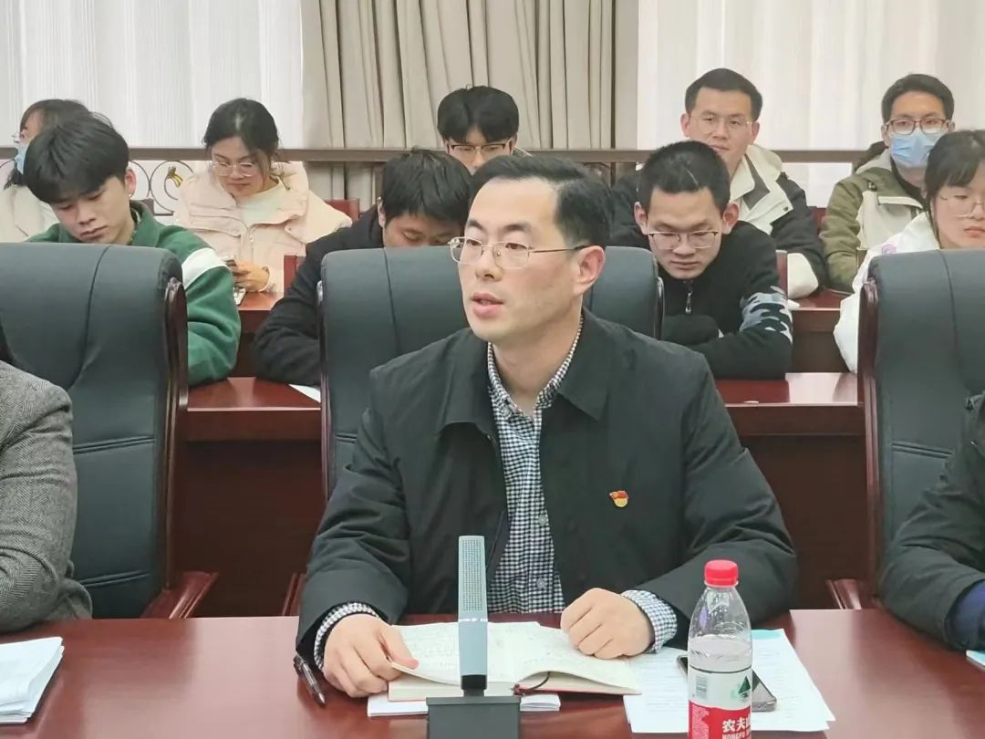 举行2023年度党支部书记抓基层党建述职考评会。学院党委书记叶青,党委副书记兼纪委书记孙鋆,学院党委委员杜恒、陈剑雄、任志英,全体师生党支部书记参加会议,17个师生党支部参加现场PPT述职,会议由学院正科级组织员夏丽君主持。
